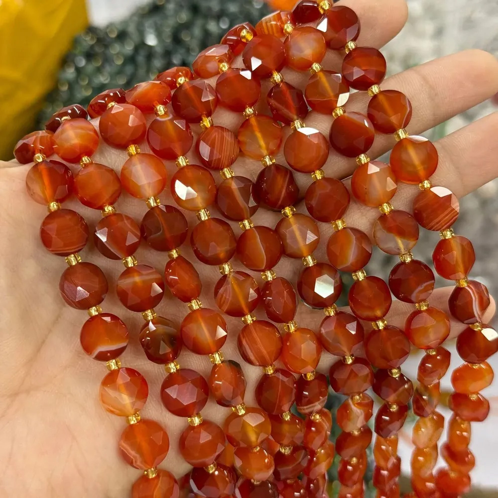 Агат красный бусины таблетки граненые 10х5 мм, на нитке 35 см (30 бусин)