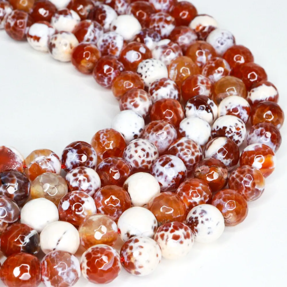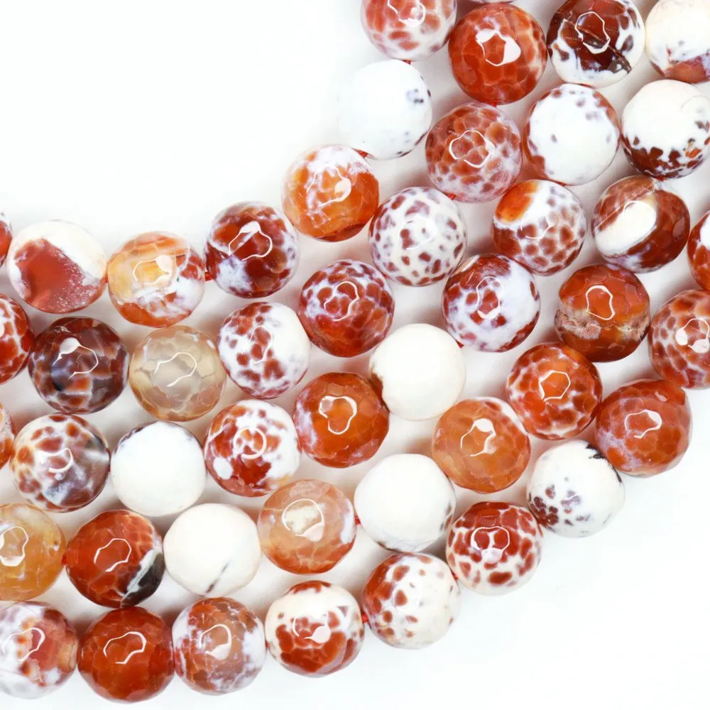 Агат "Вены Дракона", бусины граненые 4/6/8/10 мм, на нитке 38 см, цвет: Оранжевый