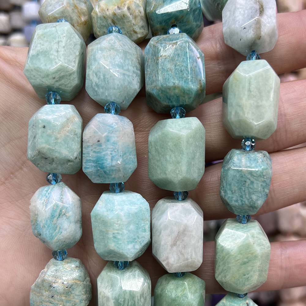 Амазонит бусины 10/15х20/25 мм, крупная грань, нитка 38 см