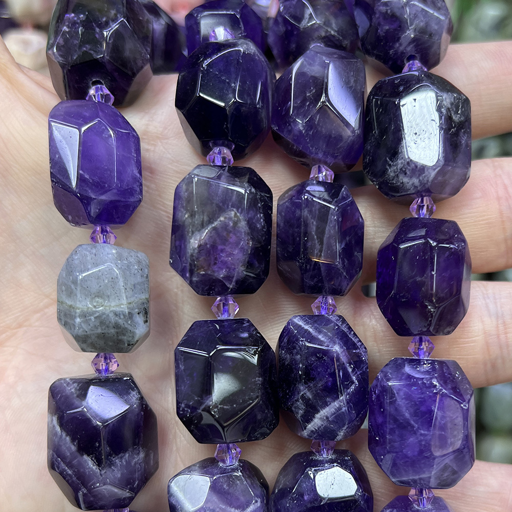 Аметист бусины 10/15х20/25 мм, крупная грань, нитка 38 см