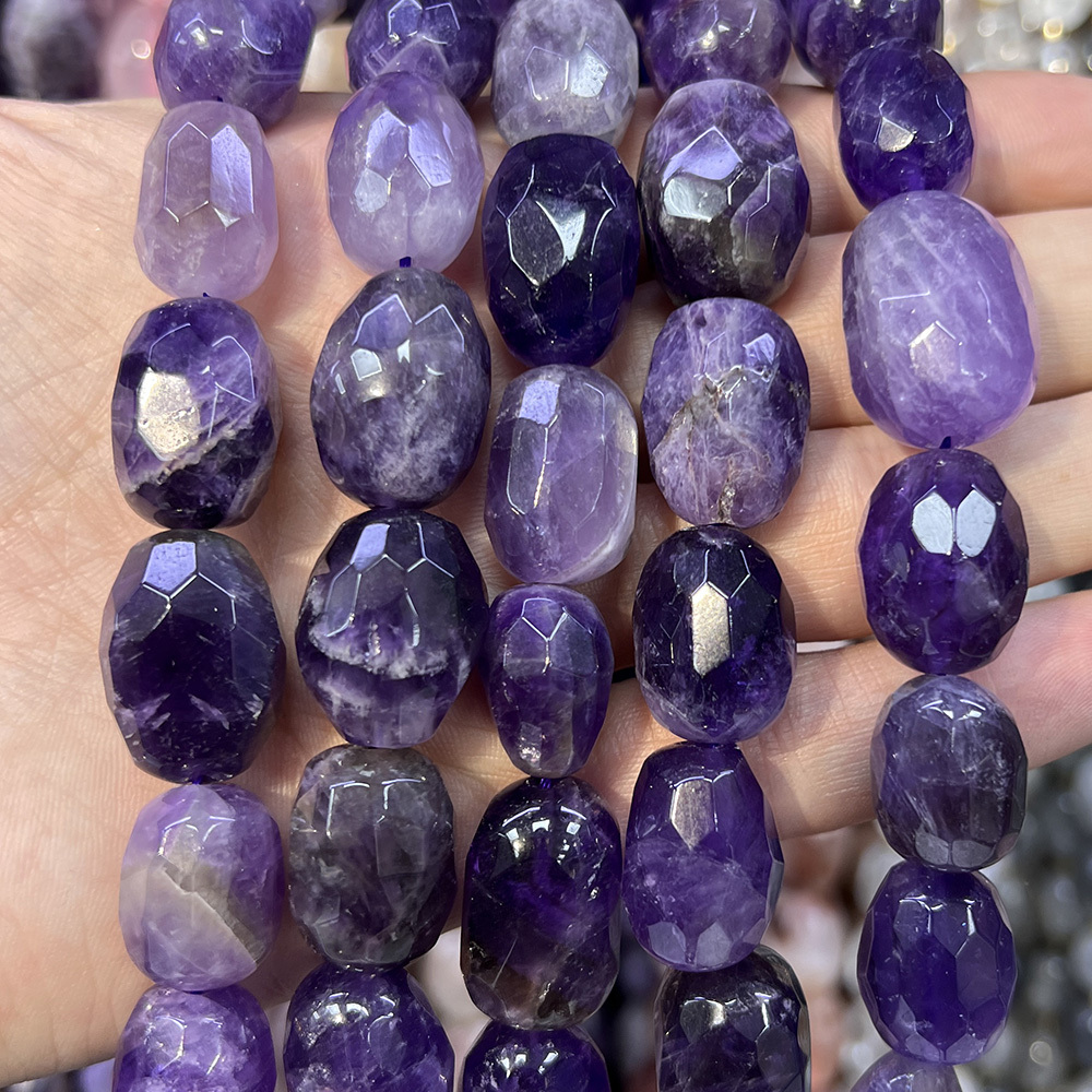 Аметист бусины 13-15х18-20 мм, мелкая грань, нитка 38 см