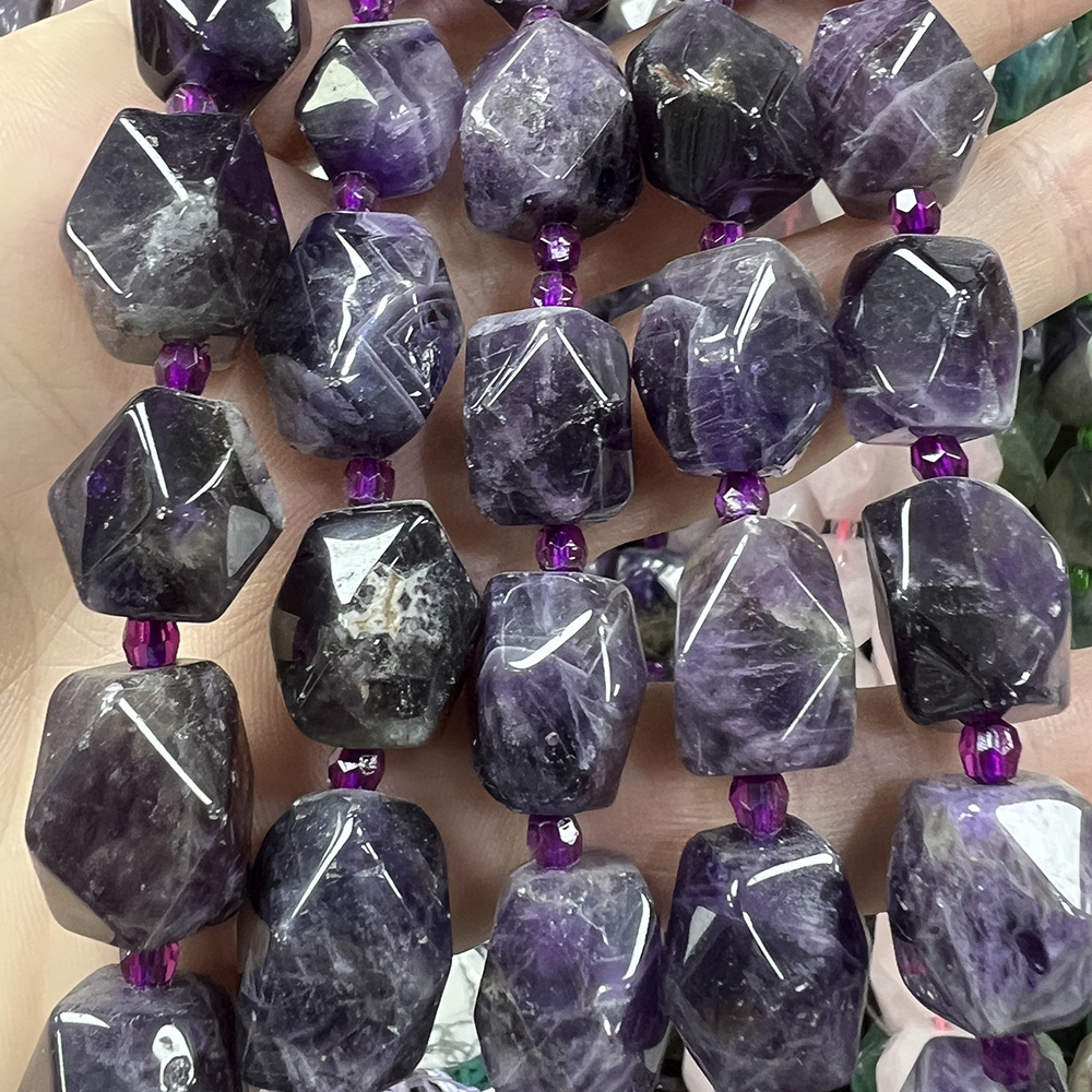Аметист бусины 13х18/22 мм, крупная грань, нитка 38 см