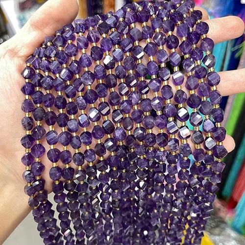 Аметист натуральный, бусины граненые скрученные 10 мм, на нитке 38 см