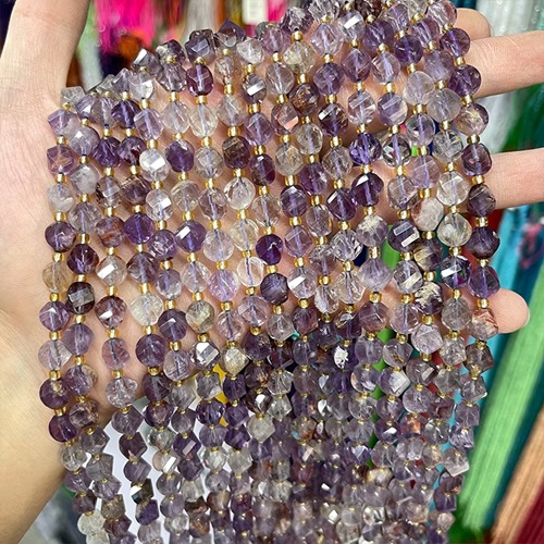 Ауралит натуральный, бусины граненые скрученные 10 мм, на нитке 38 см