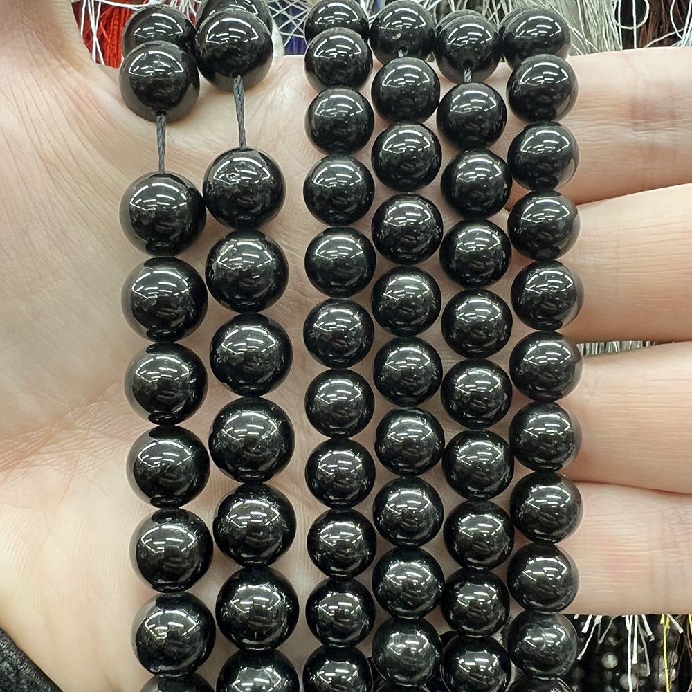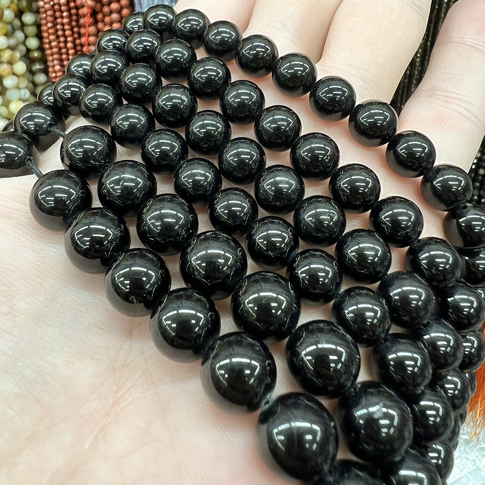 Черный Турмалин (Шерл) бусины шарик 6/8/10/12 мм, на нитке 38 см