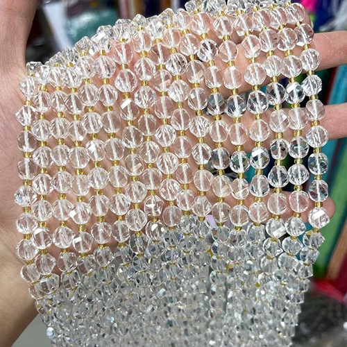 Горный Хрусталь искусственный, бусины граненые скрученные 10 мм, на нитке 38 см