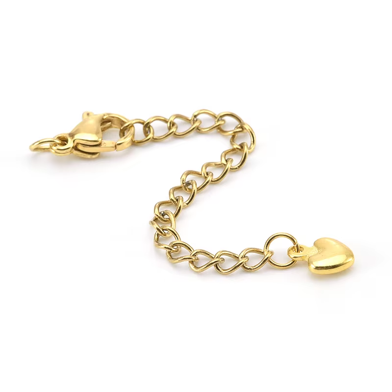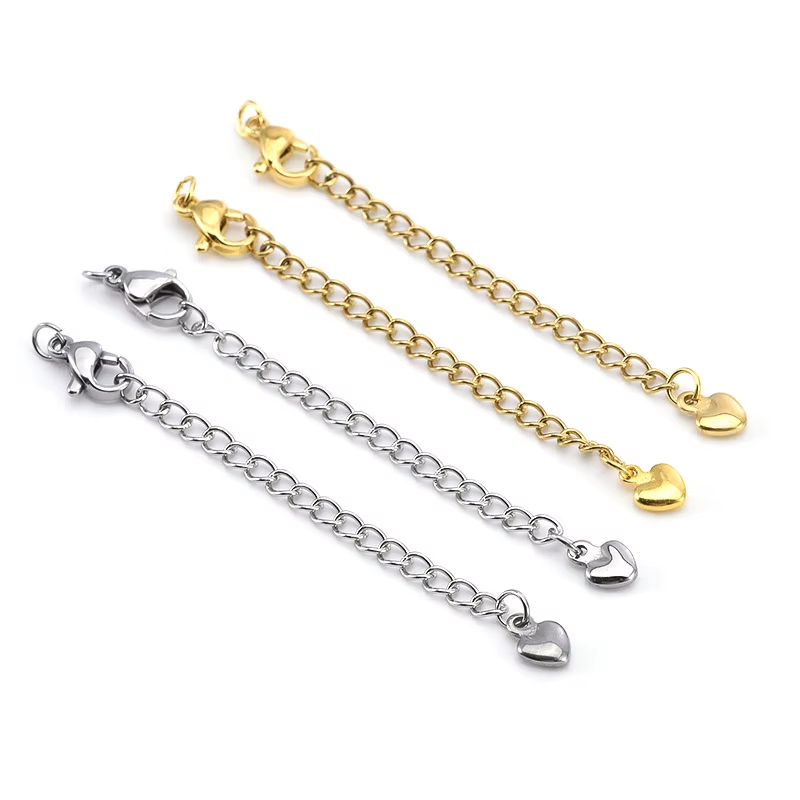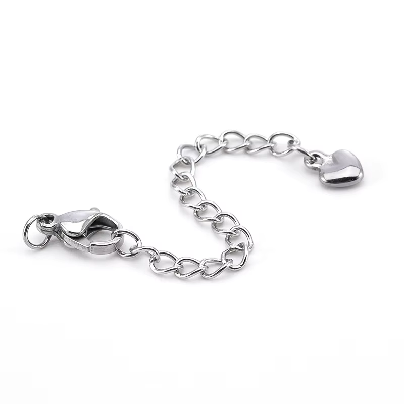 Корейские Карабины с цепочкой 5 см и кулоном Сердце, Радированные, 10х5/12х6 мм