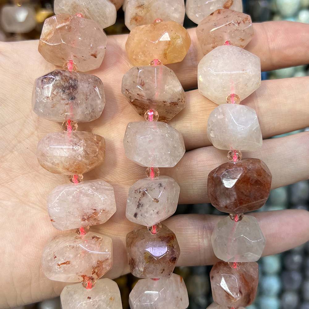 Кварц цветочный бусины 18х13 мм, крупная грань, нитка 38 см