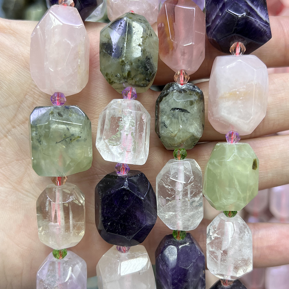 Микс камней бусины 10/15х20/25 мм, крупная грань, нитка 38 см
