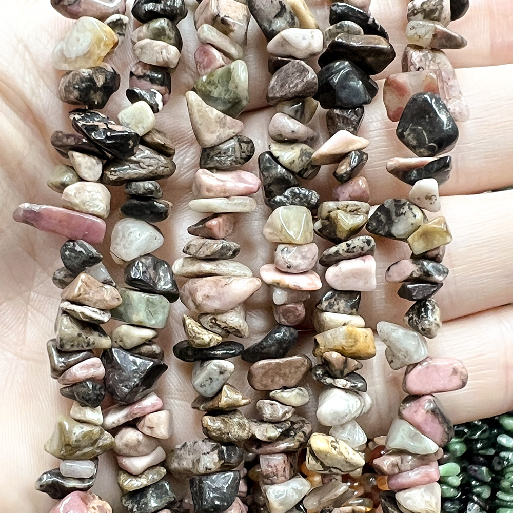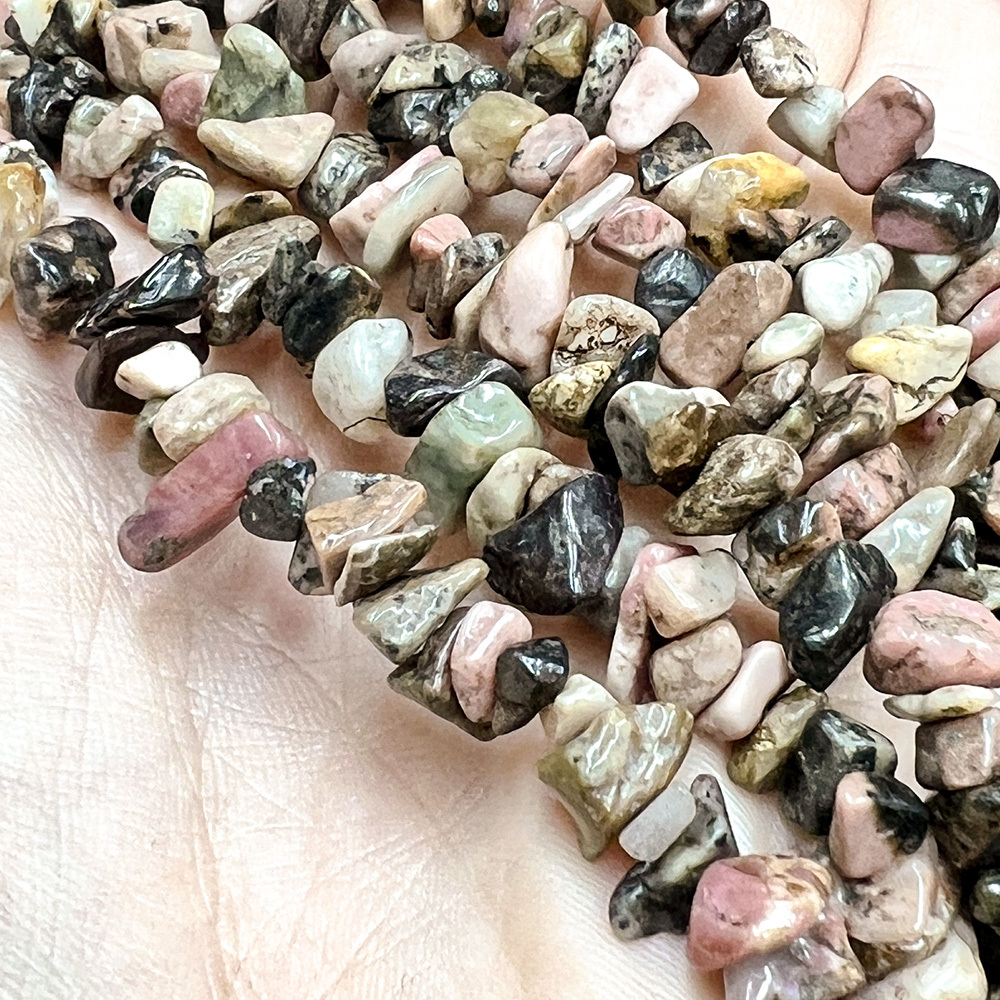Родонит древесный бусины крошка 5-8 мм, на нитке 80 см