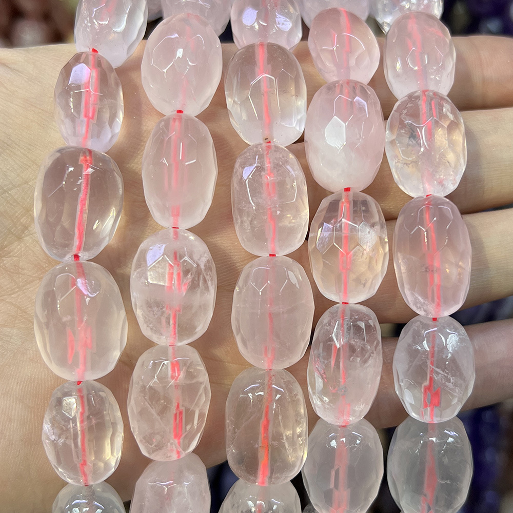 Розовый кварц бусины 13-15х18-20 мм, мелкая грань, нитка 38 см
