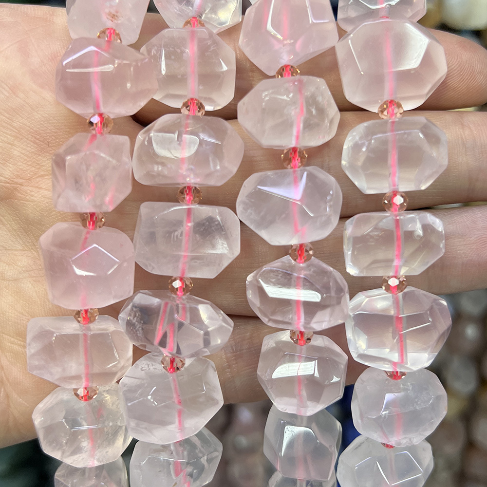 Розовый кварц бусины 18х13 мм, крупная грань, нитка 38 см