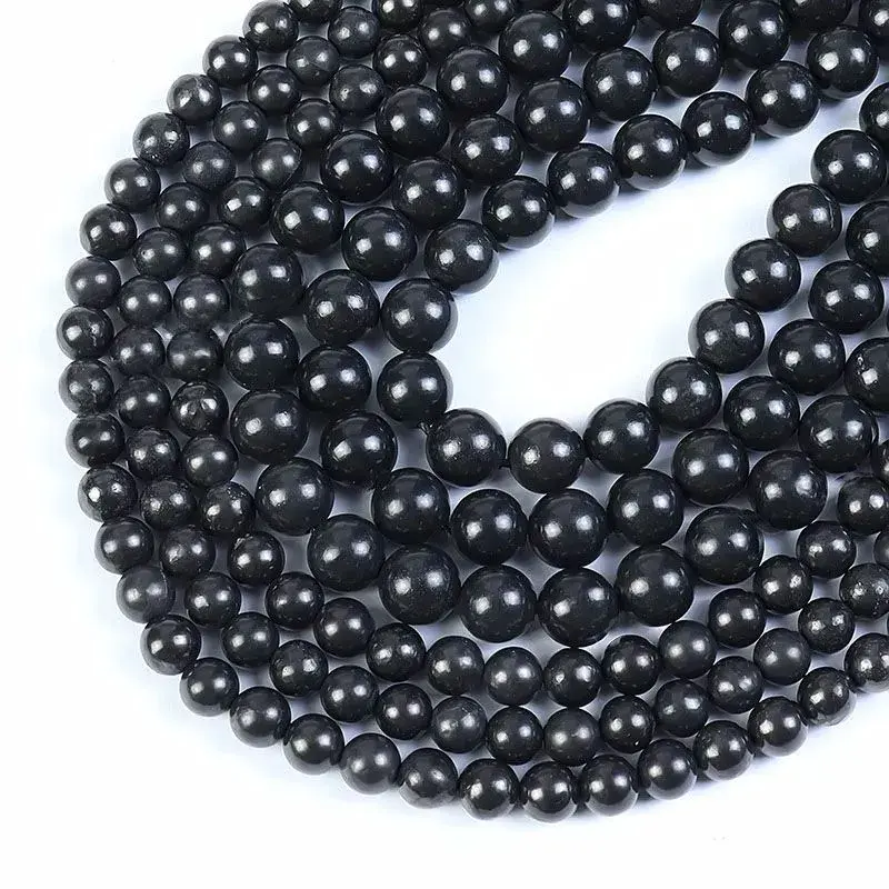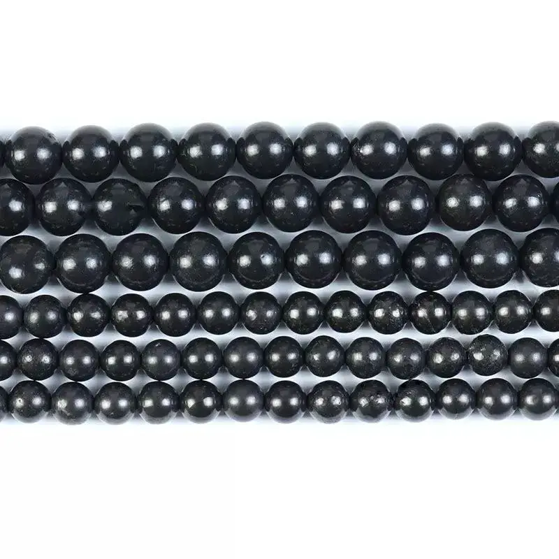 Шунгит Карельский натуральный, бусины 4/6/8/10/12 мм, на нитке 38 см