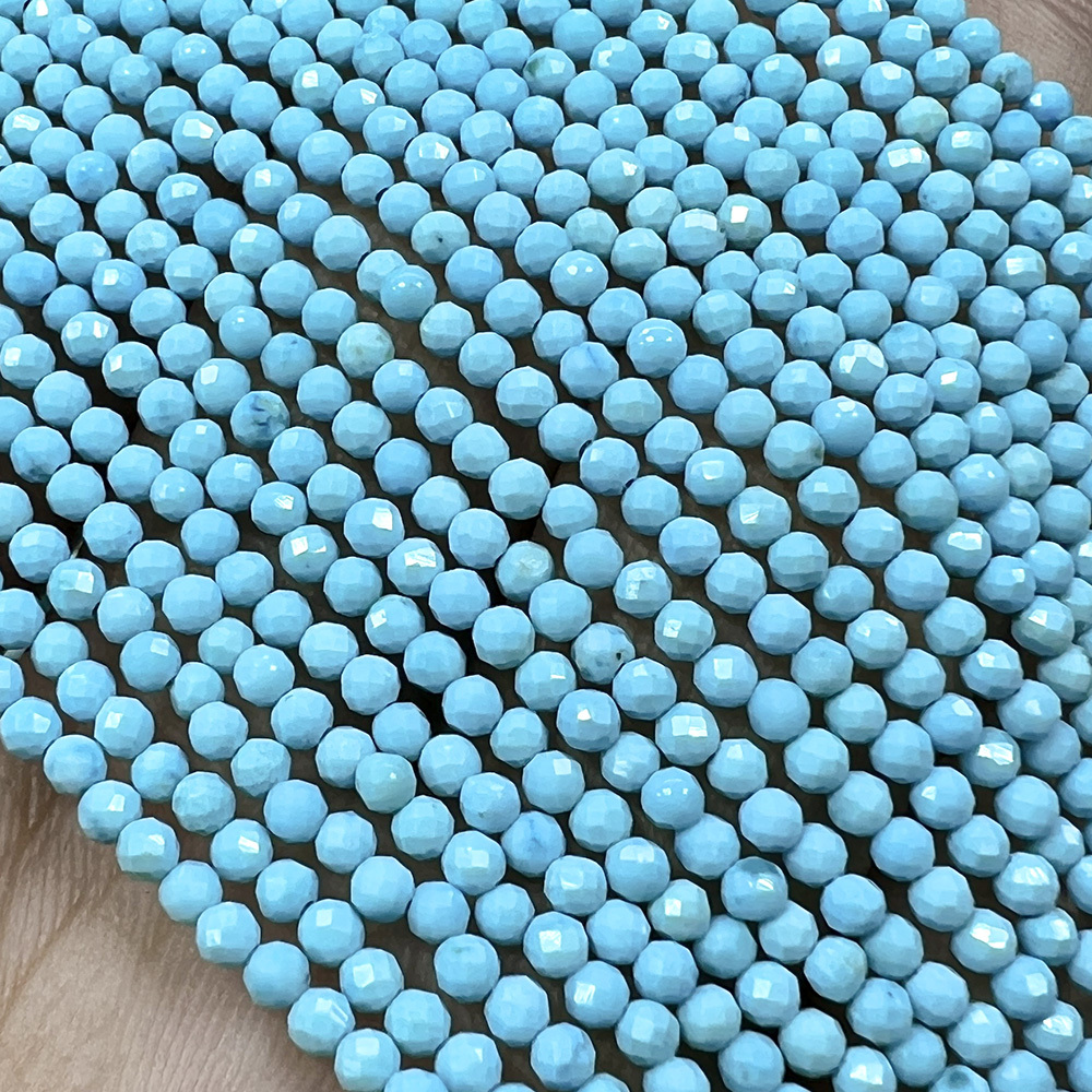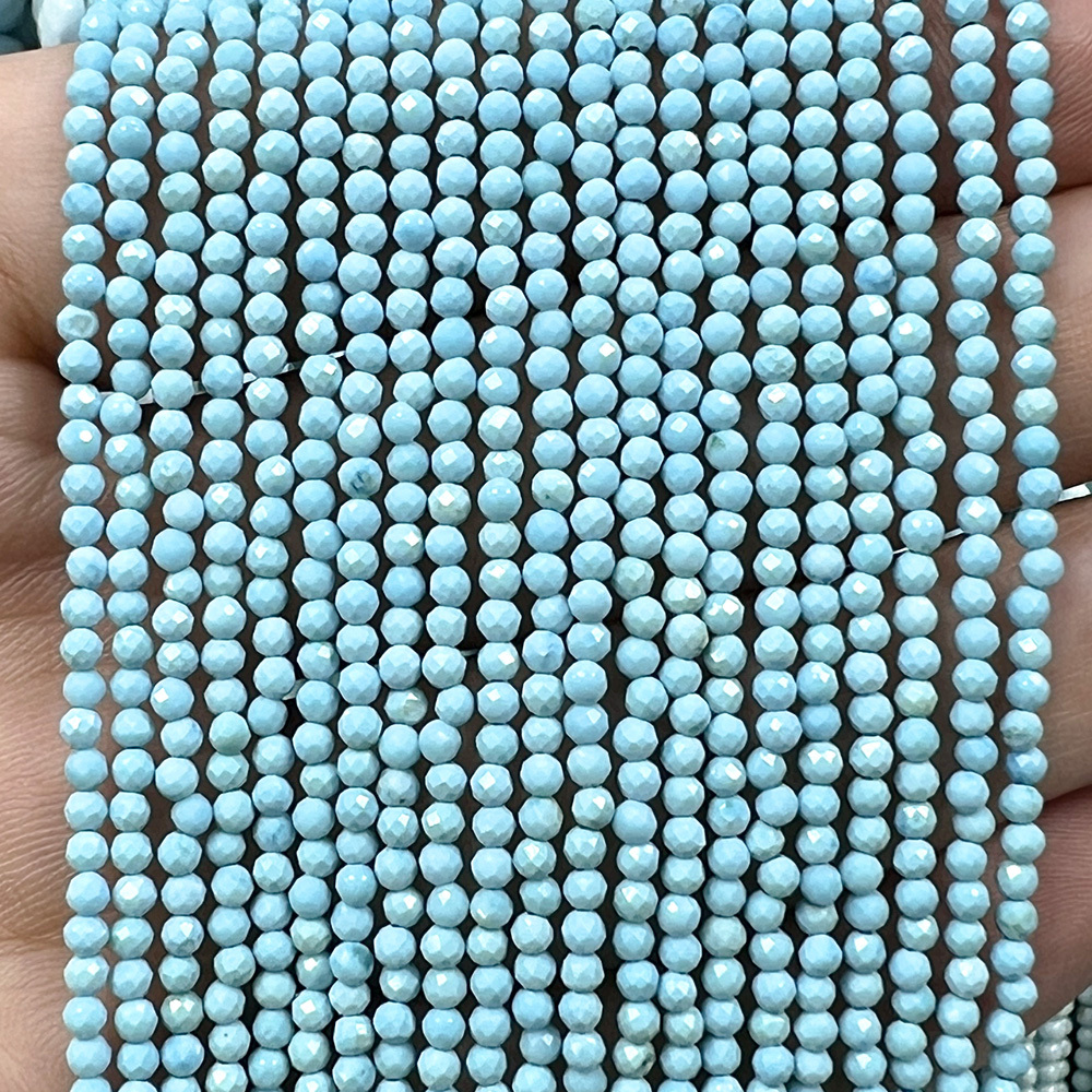 Турквенит Голубой натуральный, бусины граненые 2 мм, на нитке 38 см