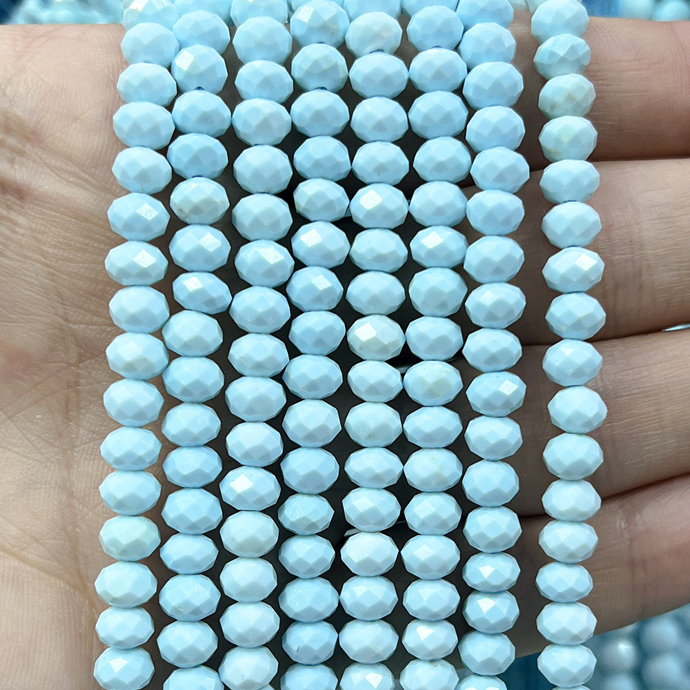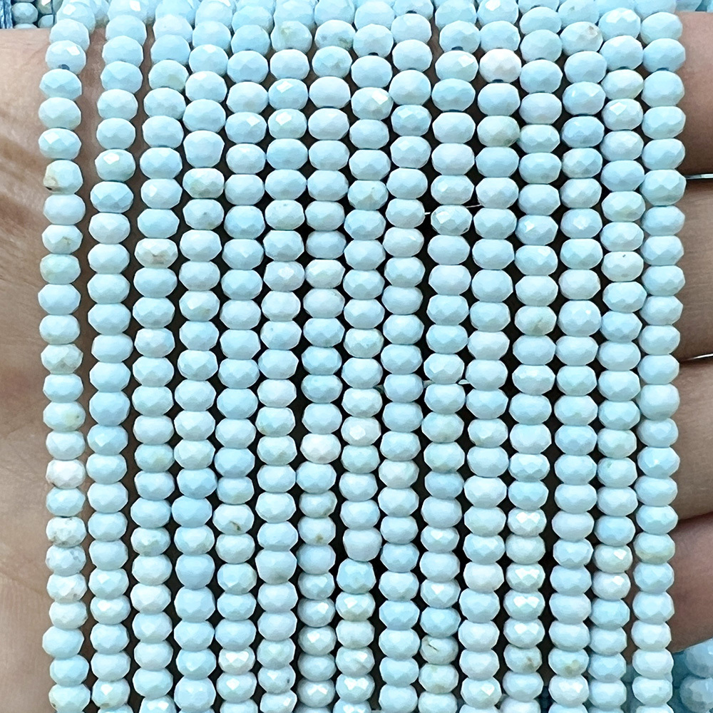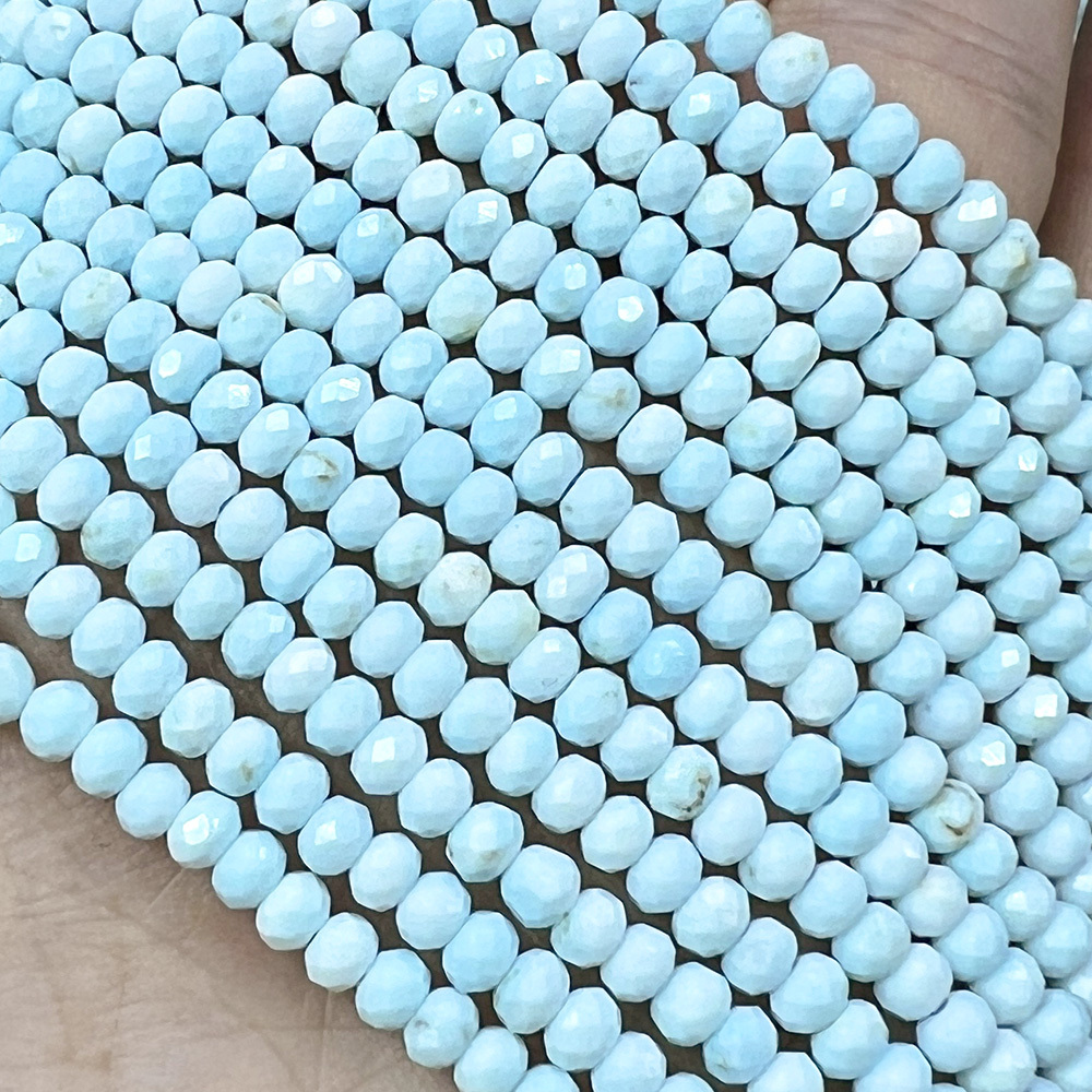 Турквенит Голубой натуральный, бусины граненые Кукуруза 4х3/6х4 мм, на нитке 38 см