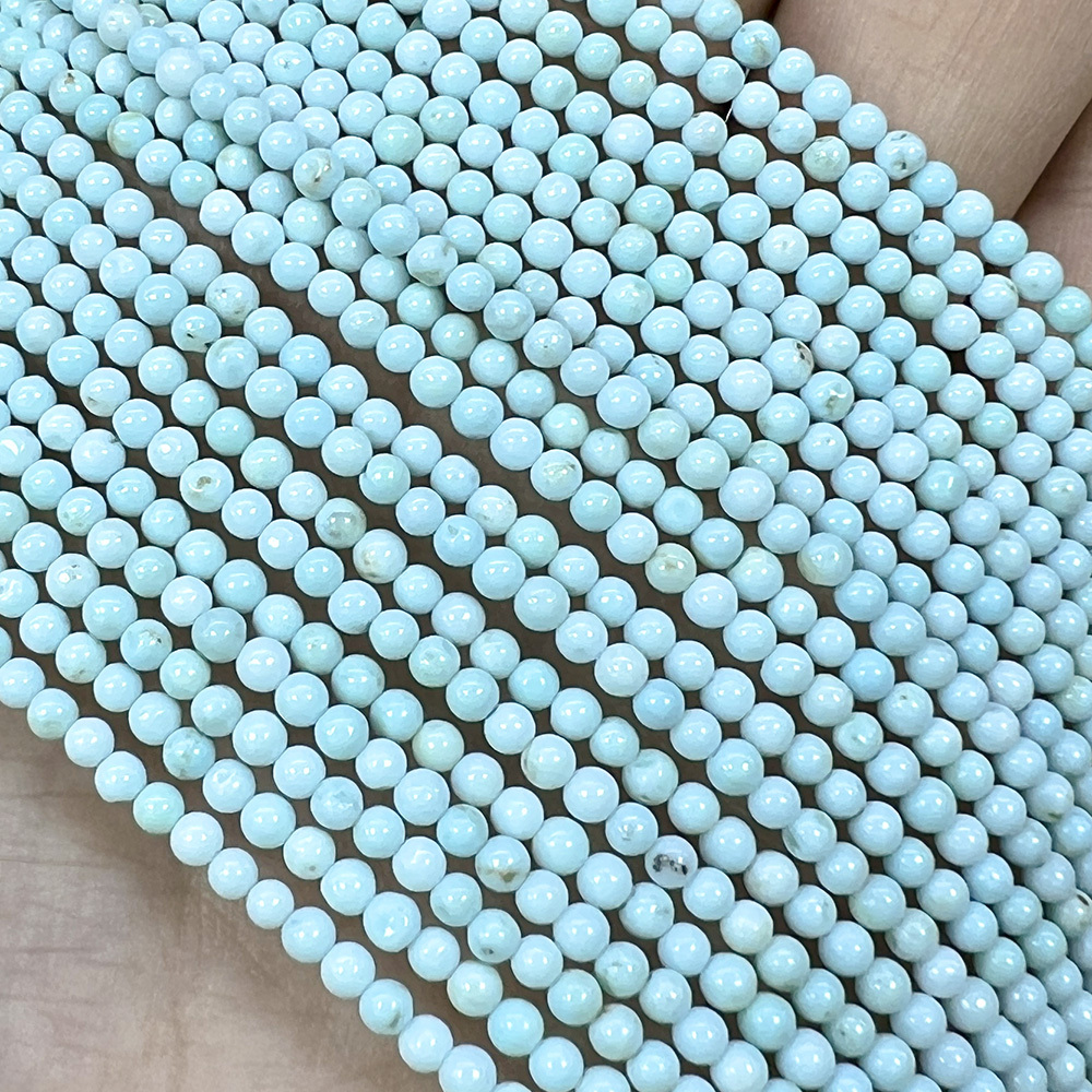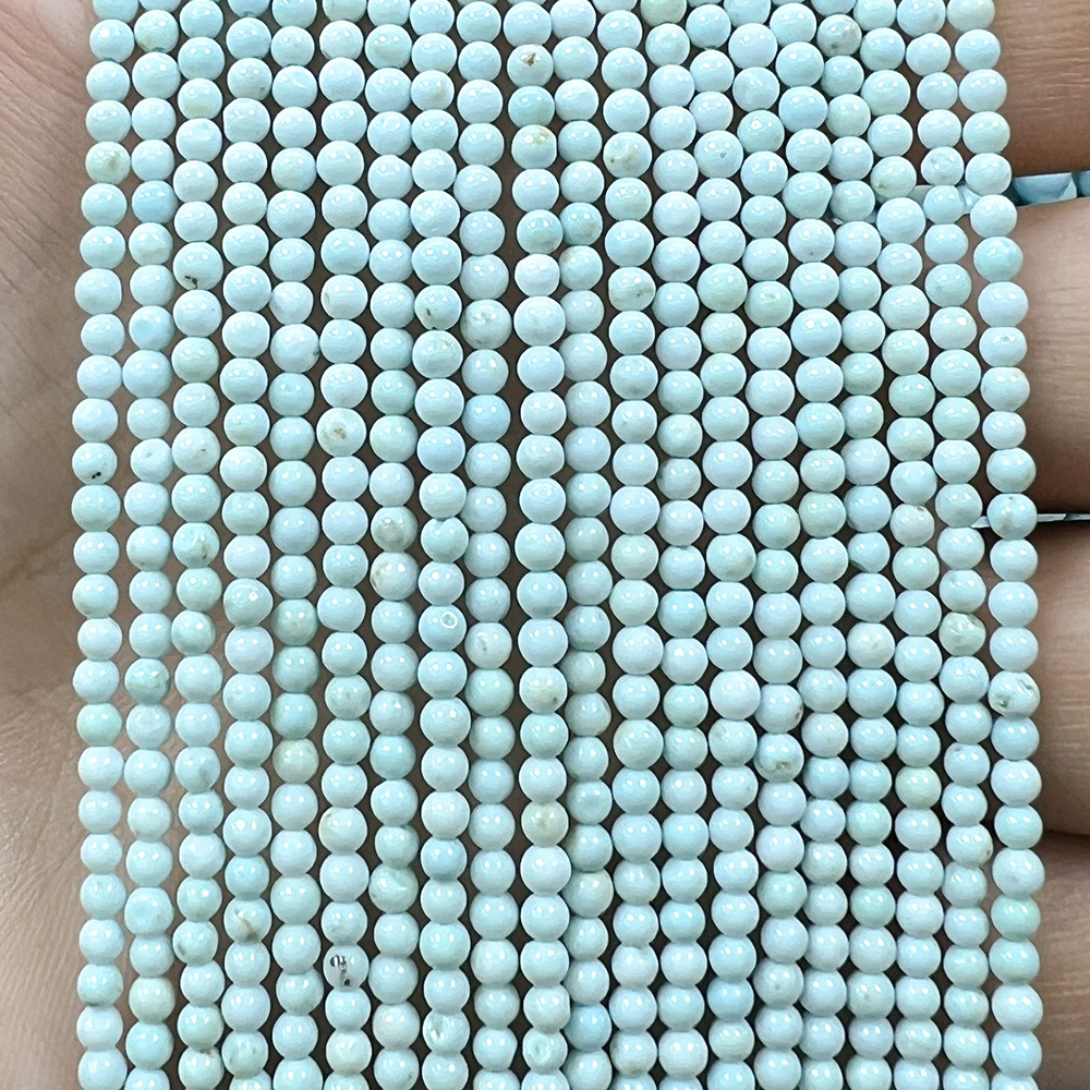 Турквенит Голубой натуральный, бусины шарик 2 мм, на нитке 38 см