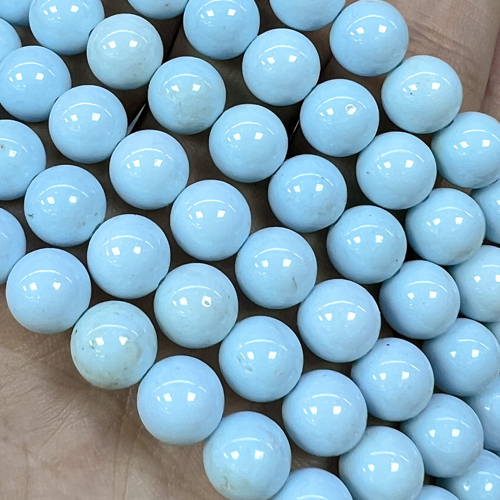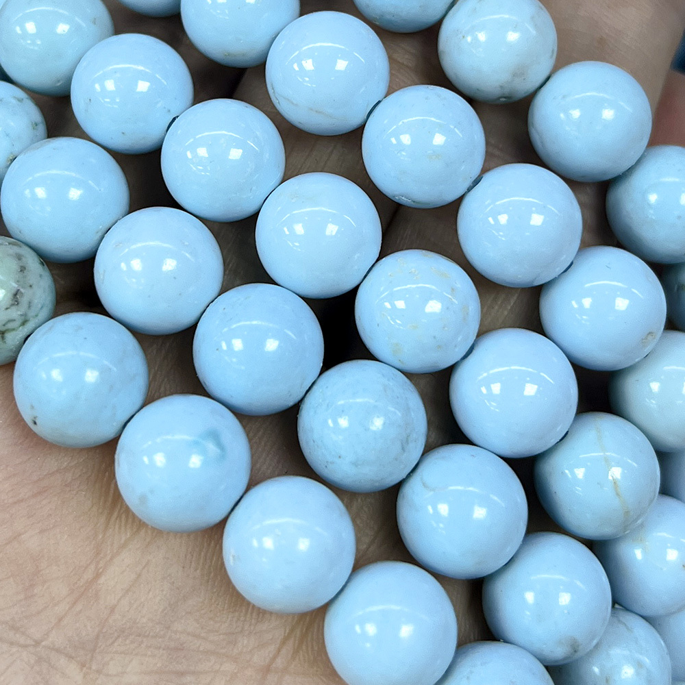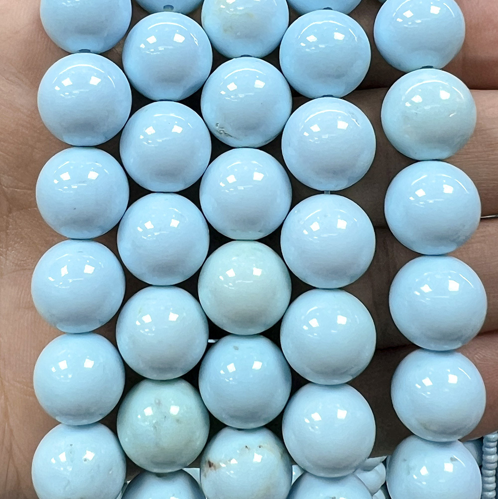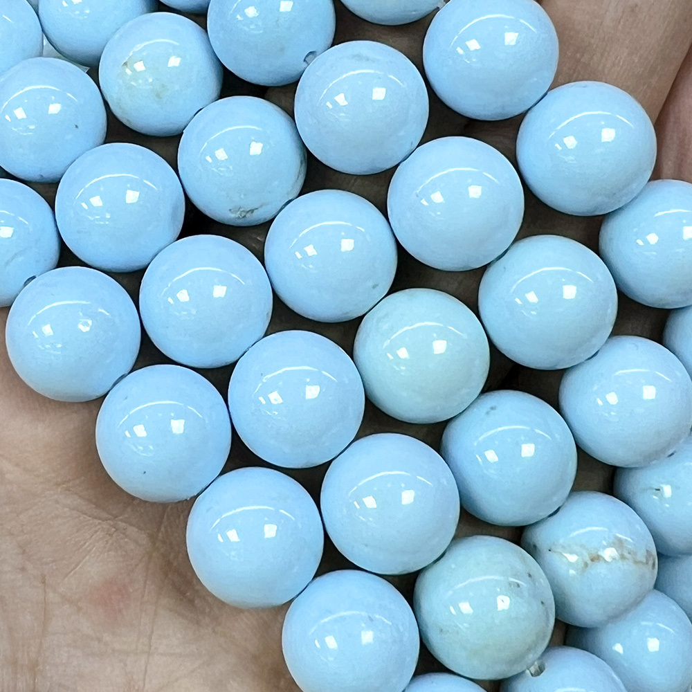 Турквенит Голубой натуральный, бусины шарик 6/8/10/12 мм, на нитке 38 см