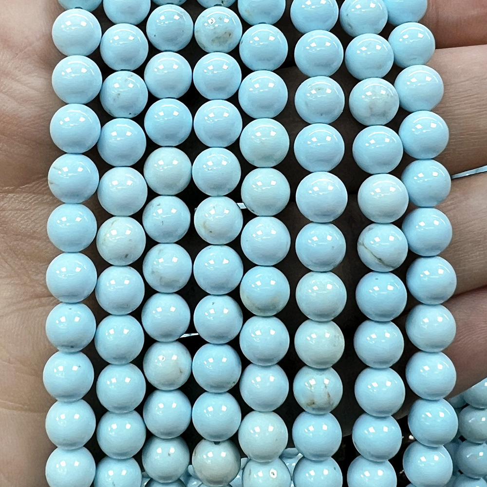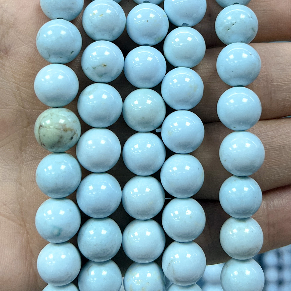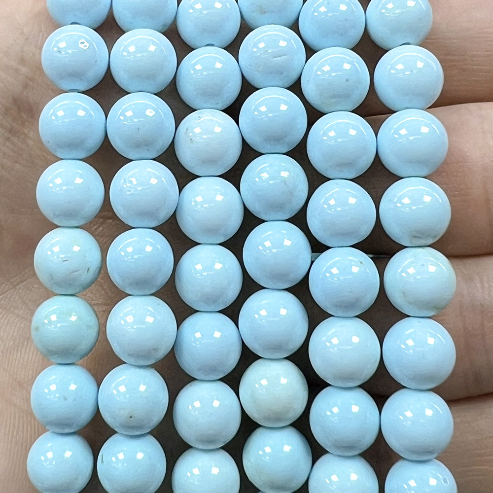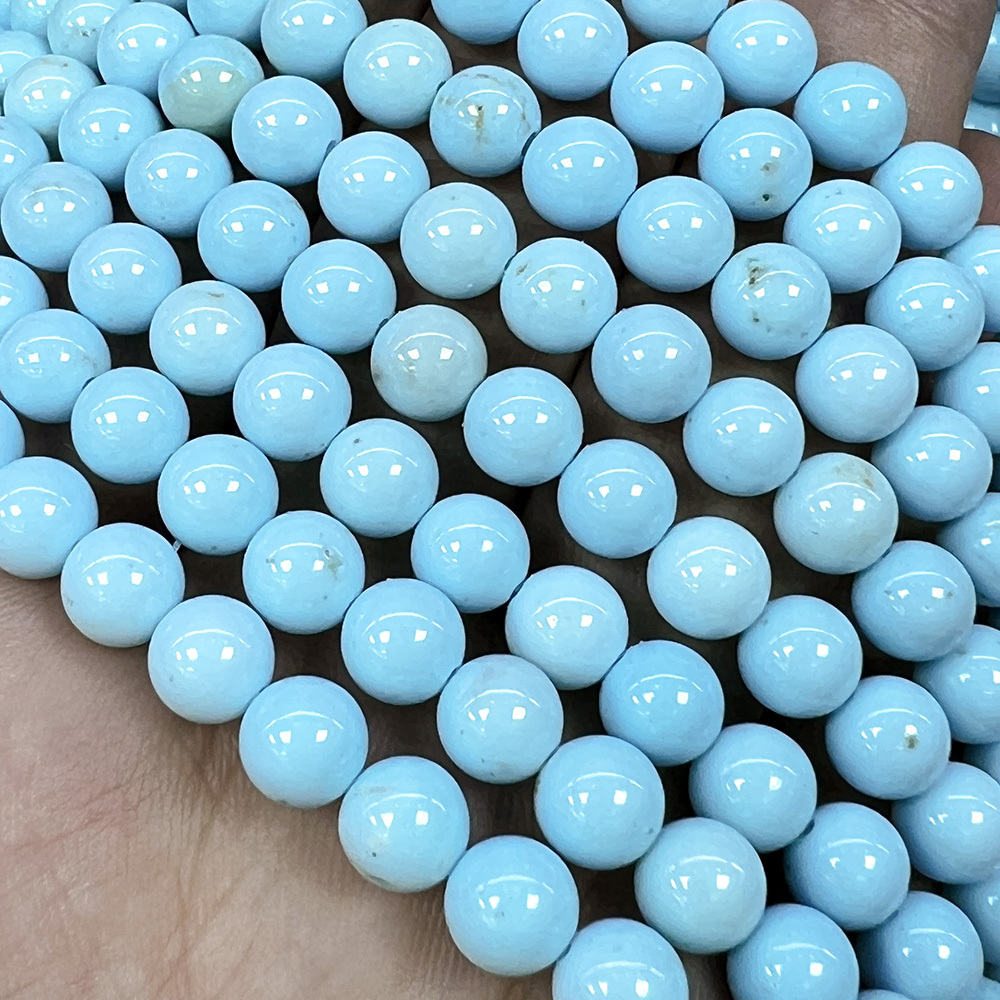 Турквенит Голубой натуральный, бусины шарик 6/8/10/12 мм, на нитке 38 см