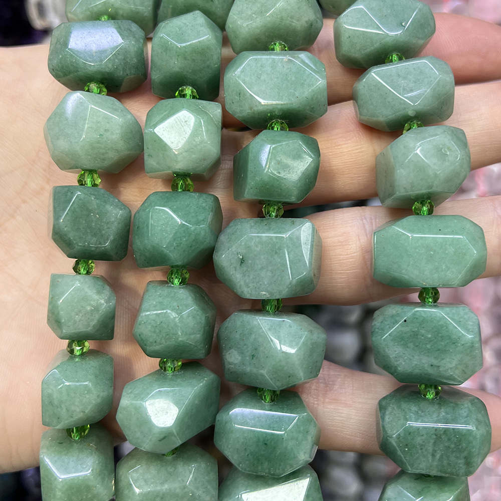 Зеленый Авантюрин бусины 18х13 мм, крупная грань, нитка 38 см
