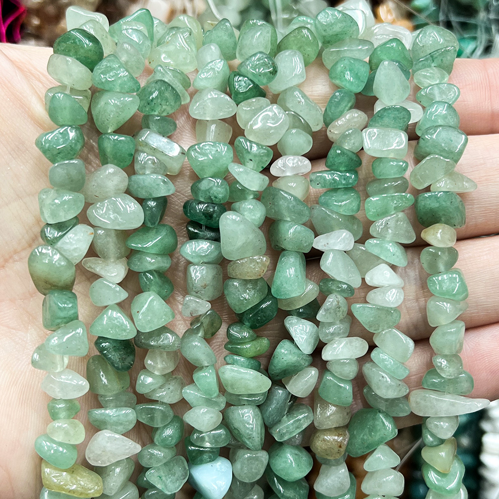 Зеленый Авантюрин натуральный, крошка 5-8 мм, на нитке 80 см
