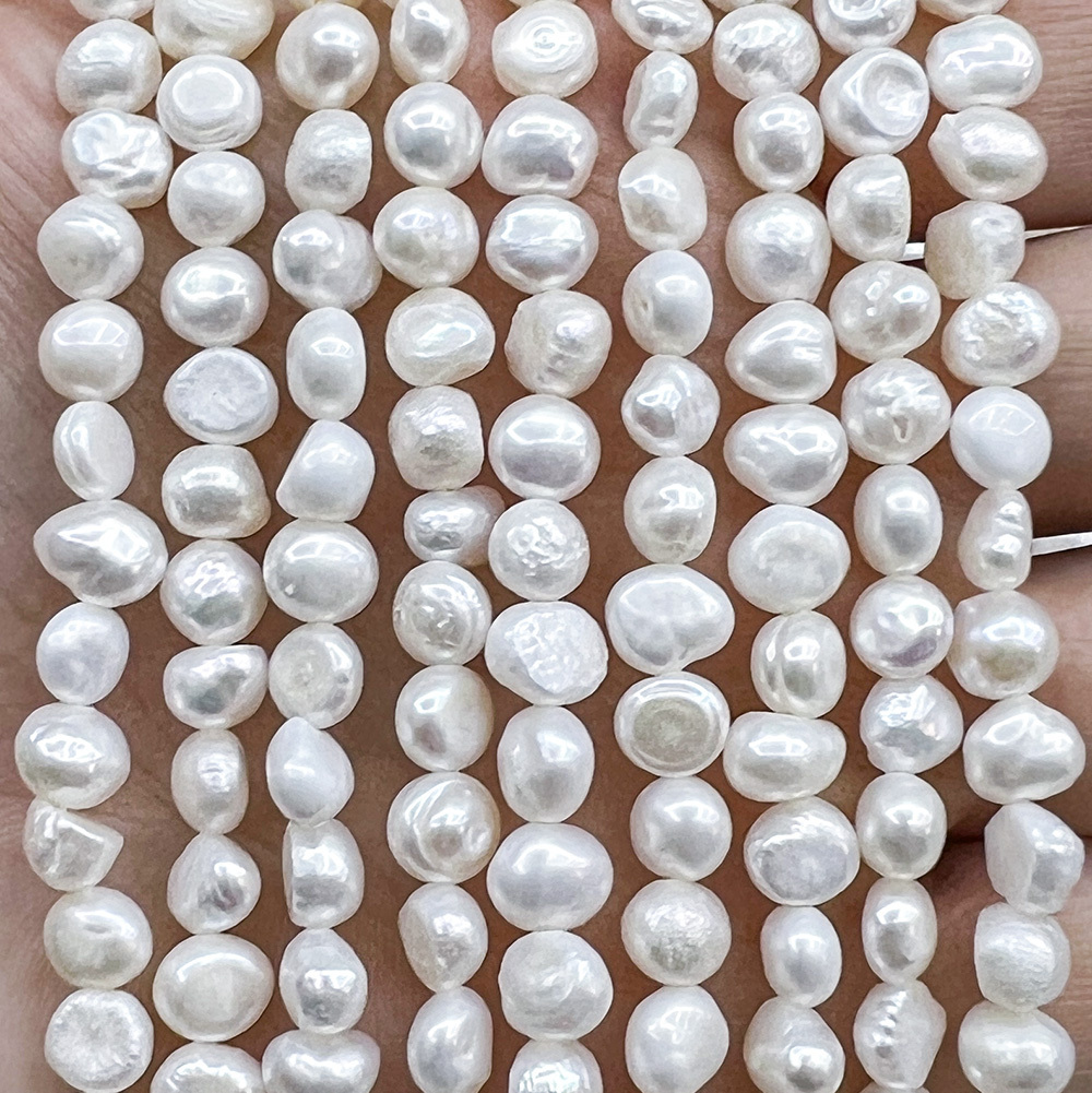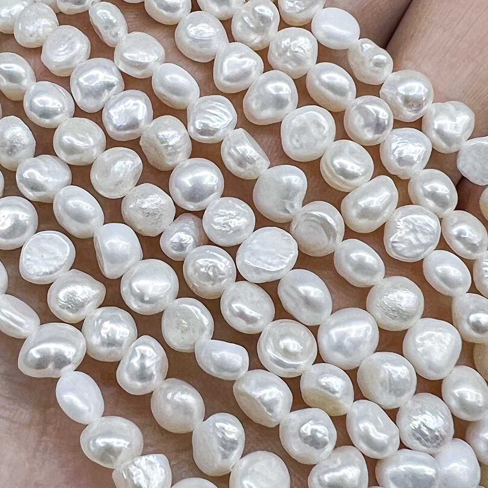 Жемчуг 2А речной бусины 6 мм, на нитке 38 см