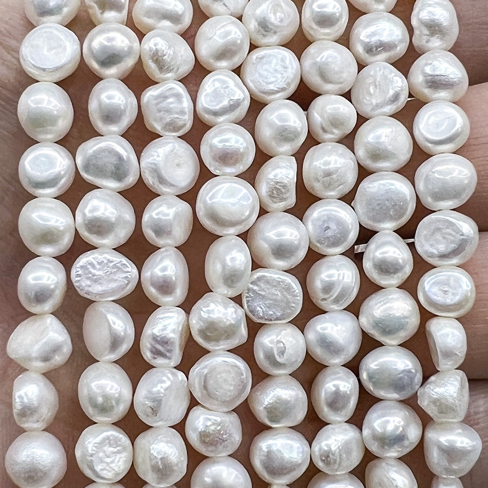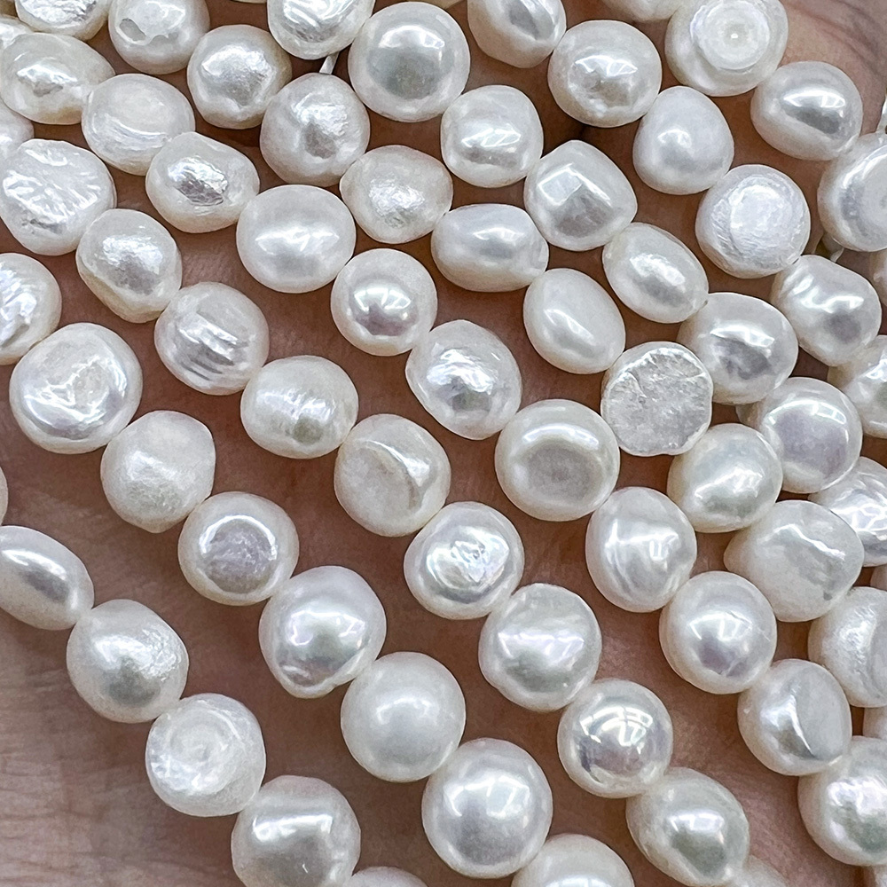 Жемчуг 2А речной бусины 7-8 мм, на нитке 38 см