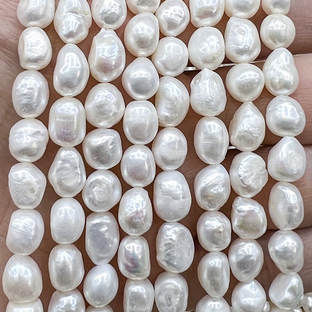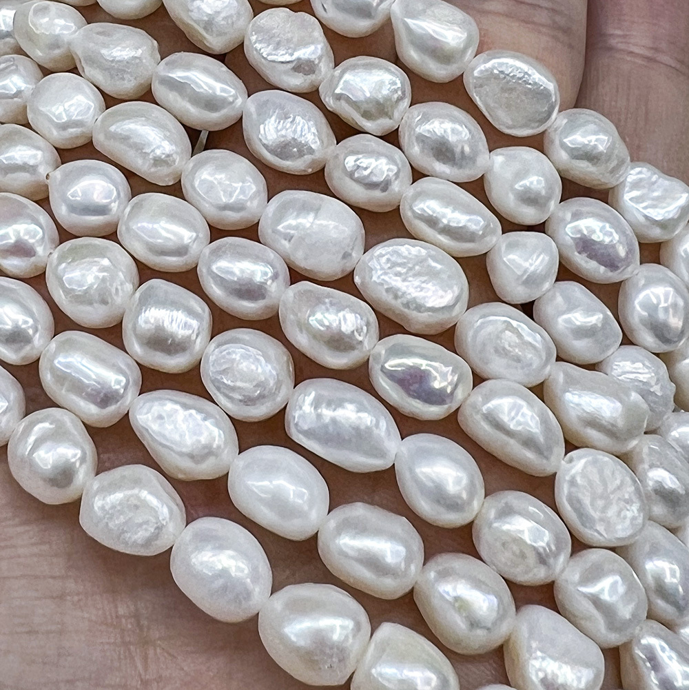 Жемчуг 2А речной бусины 8-9 мм, на нитке 38 см