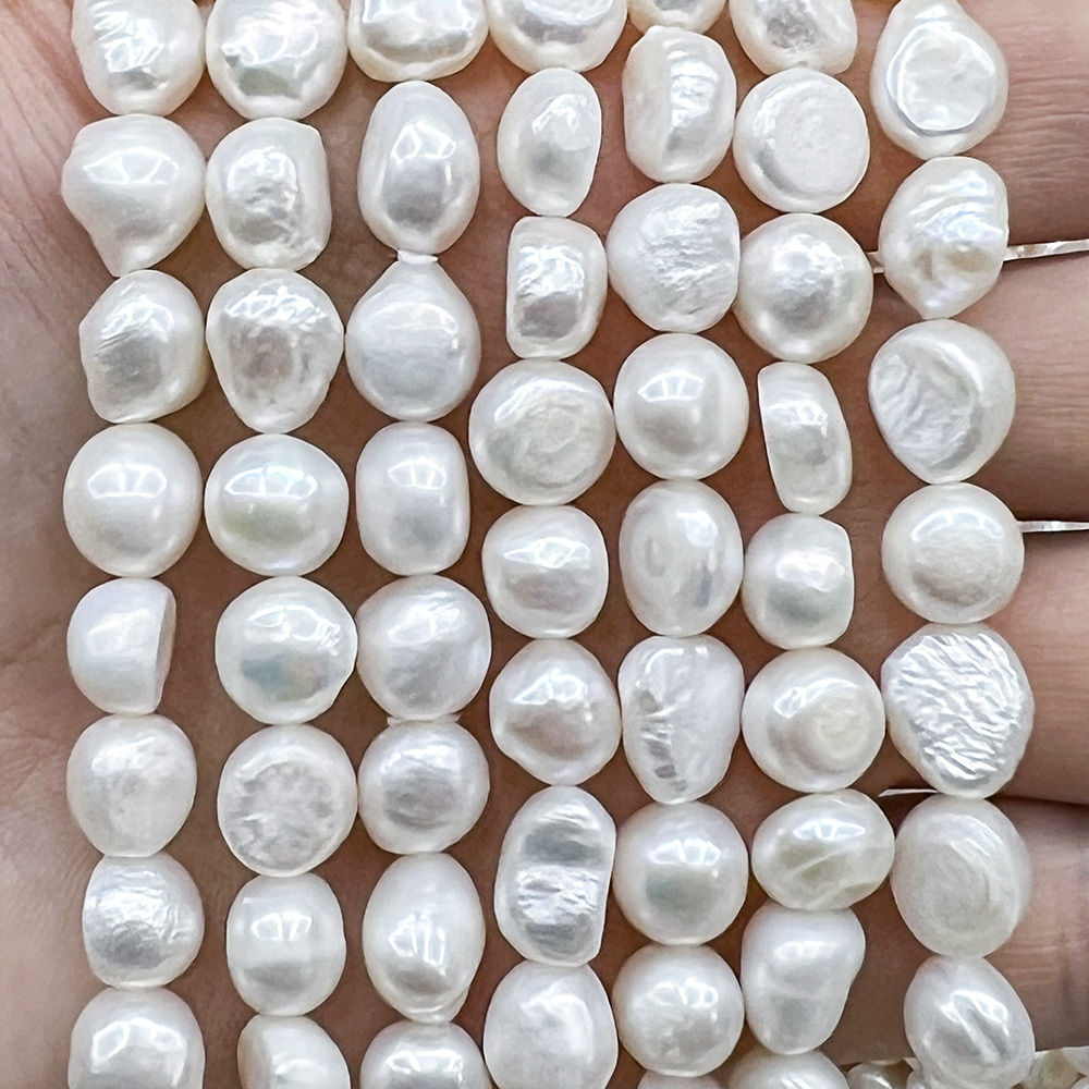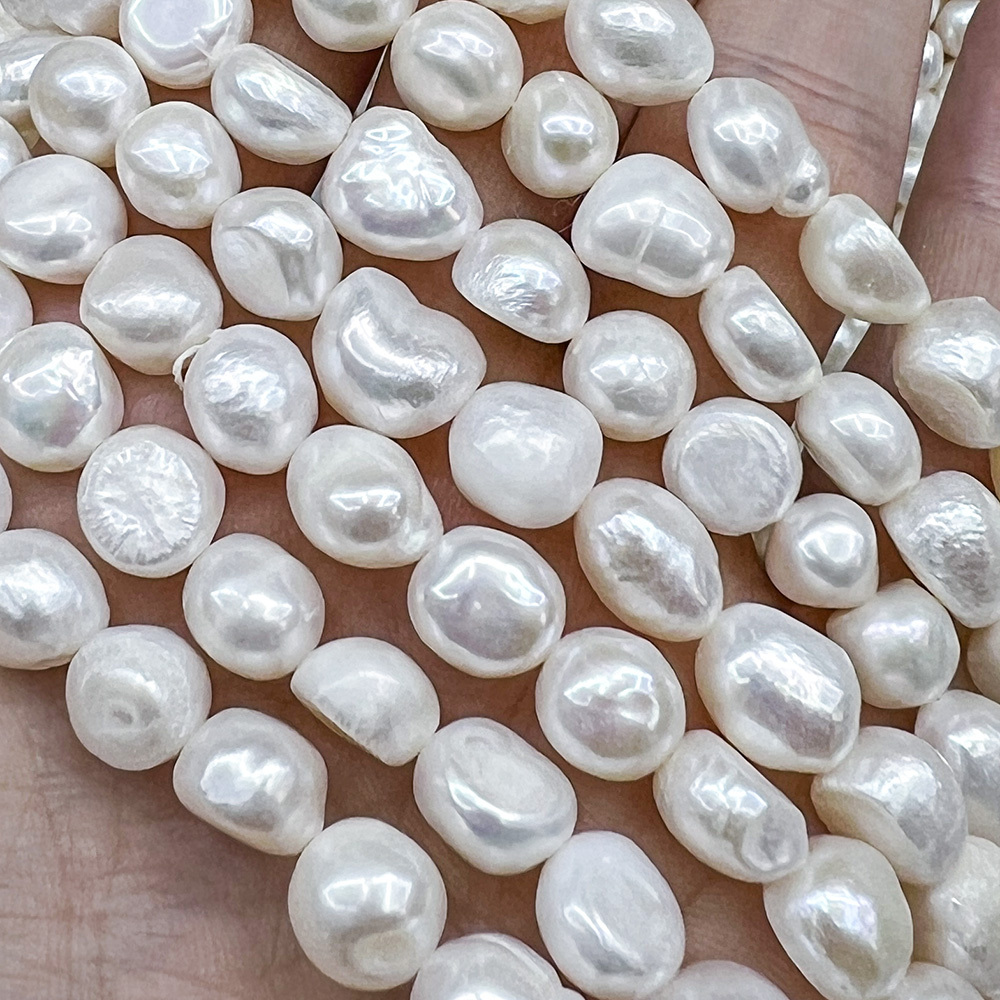 Жемчуг 2А речной бусины 9-10 мм, на нитке 38 см