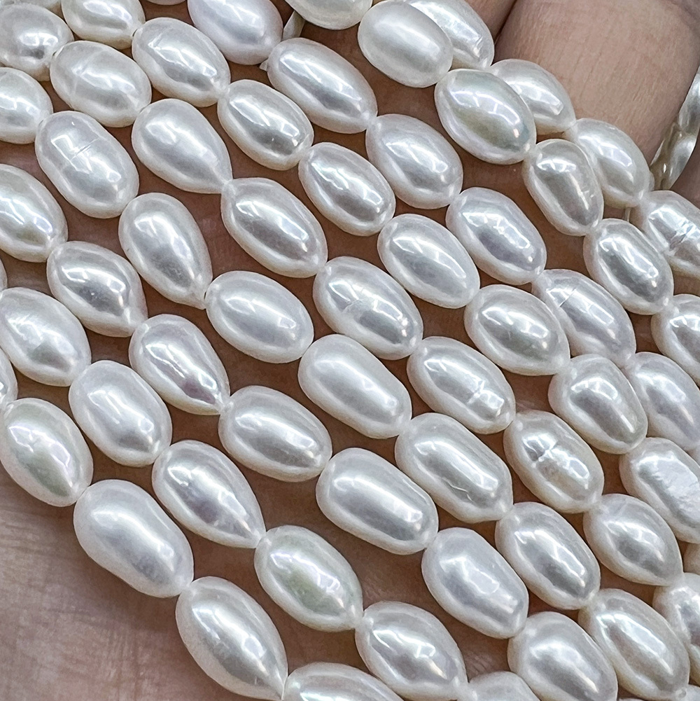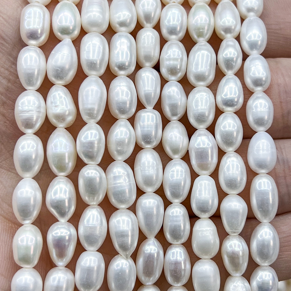 Жемчуг 3А речной бусины Рис 6-8 мм, на нитке 38 см