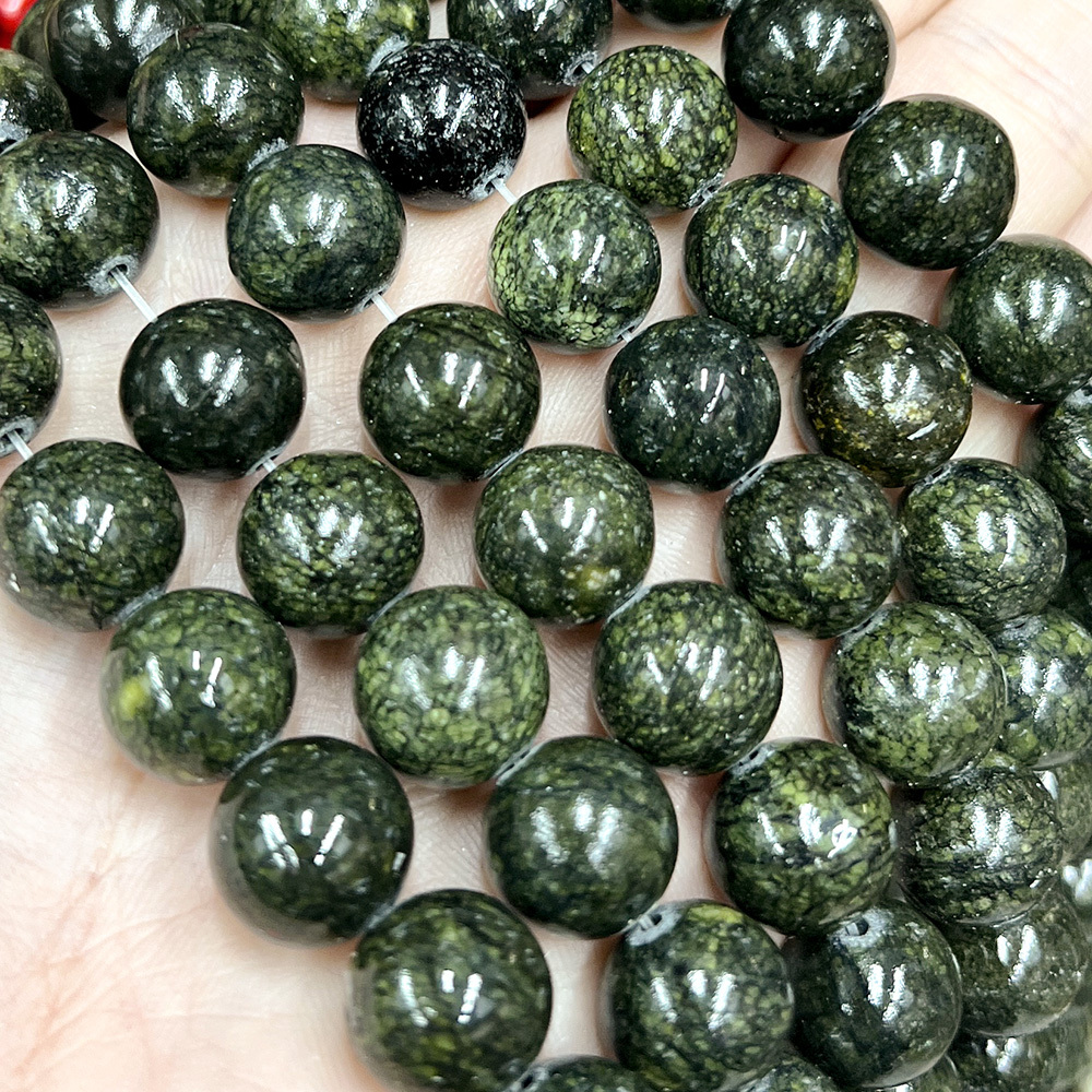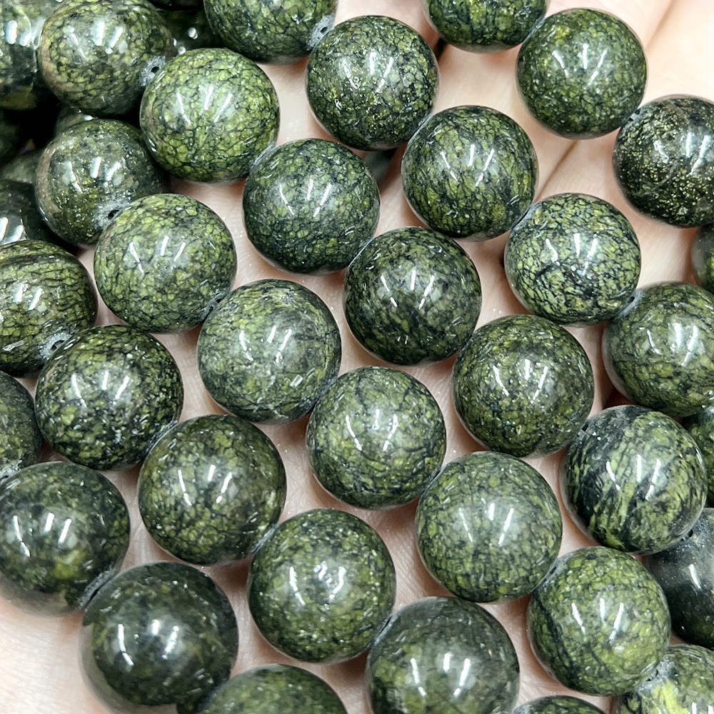 Змеевик (Верданит) бусины шарик 4/6/8/10/12/14 мм, на нитке 38 см